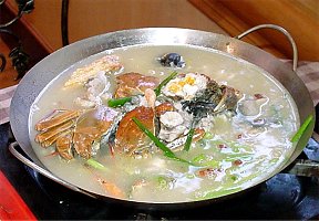 鍋仔爬跳湯はその名前からして何が出てくるかと思っていたのですが出てきたものは毛蟹と河蝦、牛蛙の鍋でした。 湯に少々味がつき過ぎているのが残念ですが牛蛙の皮が絶品でした。 最初はすっぽんが入っているのかと思ったのですが蛙の皮でした。 相当活きの良いねたを使っているのでしょうね。 もちろん生きているやつだと思いますよ。