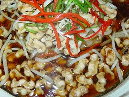 [豆支]油皇雀[月屯]は皇雀の砂肝の料理です。 ところで、皇雀とは何でしょうか。 稲を食べる雀に似た小鳥の花雀かとも思うのですが、いくつかの著書にあたってみましたが確証は得られませんでした。