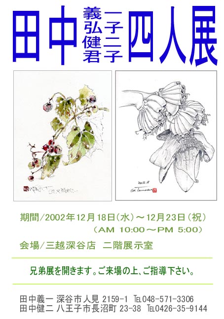 | 同じ対象を一ヶ月半も描き続けたのははじめてです。彩色してしまおうという誘惑にかられたときもありましたが、がまん強く鉛筆一本を通しました。同じモチーフのスケッチ五十枚を並べてみると、作品の善し悪しはともかく、生命の神秘さを感じます。南の芭蕉が私の近くにいつ頃から入ってきたのかはわかりませんが、暑い地方独特の植物の雰囲気があります。田中一村という画家が都会を捨て南の島で制作活動を続けようと志した心情が理解できるような気がします。今まで年1.2回の個展を開いてきましたが、抽象的な雰囲気の作品が多かったので、今回はより具象的なこの作品を展示します。みてください。 |