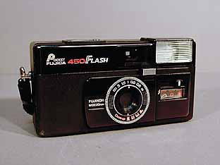| ポケットフジカ250を進化させたのがこのポケットフジカ450である。距離調節、絞り調節も出来るようになって撮影の範囲が広がった。このポケットフジカの縦形スタイルは非常にホールディングもよくこのころ問題になっていた110カメラのブレ防止に役立っている。中古市場では、ジャンク箱にいることが多い。 | ||