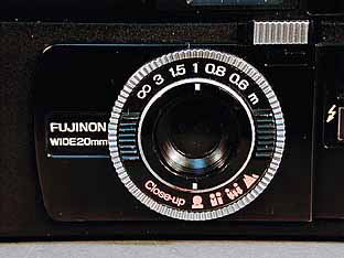 レンズ: フジノンワイド20mm F4(3群4枚) シャッター: メカニカル(1/160) シンクロ: ストロボ内蔵 ファインダー: アルバタ式ブライトフレーム 焦点調節: 距離メモリ、ゾーンフォーカス 露光調節: なし フィルム送り: 背面ノブ巻き上げ フィルター: 寸法: 110×57×37mm 重量: 180g 発売: 1977(昭和52)年3月 価格: 19800円 |