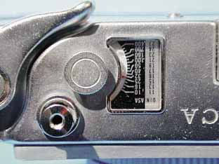 巻き上げ部から見る。 くわえ込み式EEの為、シャッターボタンが飛び出している |