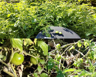 秋トマトようにとコンポスト前に挿し木したトマトに実が付き始めた。赤くなってm(__)m。