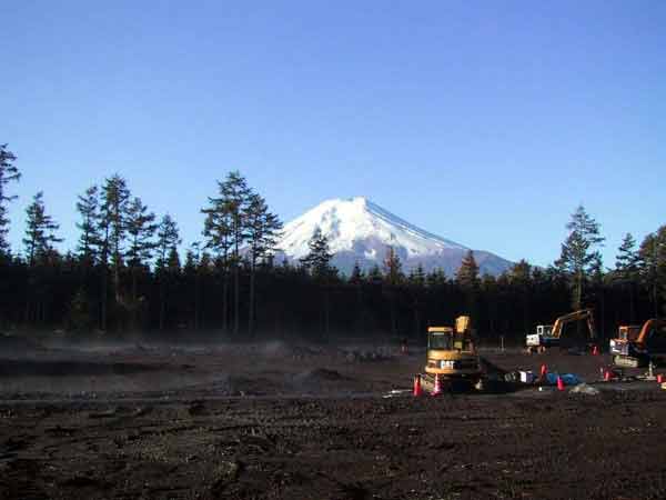 富士山の右斜面の雲のところに宝永山が見えます。いまから約300年前