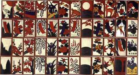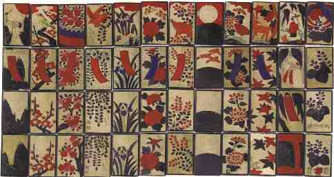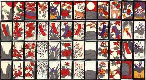 花札と言うと、デザインが決まったもののように思われがちですが、 以前は様々な会社が独自のデザインの花札を販売していました。現在は会社も少なくなり、デザインもほとんど統一されてしまっています。 「百円」(任天堂) 「花の山」(任天堂) 「東山」(任天堂) 「春」(大石天狗堂) 「天狗」(日本娯楽) 「豊太閤」(大日本トランプ) 「太陽」(東洋骨牌) 「山田」(玉水堂) 「王将」(エンゼルトランプ) 「丸十」(山興) 「ハワイ花」 「金時花」(大石天狗堂)