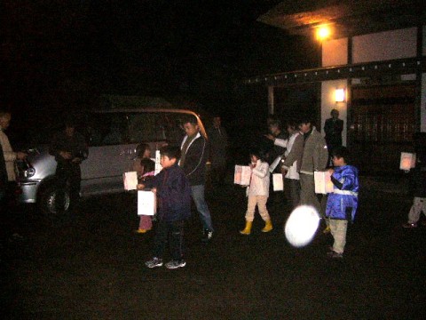まず、子供たちが行灯を持って神社まで行く。神社から1個ずつ行灯を道端に置いてくる。神を迎える道案内である。部屋の周囲にずらっと座布団を並べ、参加者たちが座る。この日は村の者立ちだけという決まりだが、特別に参加することを許された。最近は集落の者だけでは少ないのだそうだ。各人の前には、和紙が一枚おかれる。そこには場の名前と「一、二、三」の文字が2つずつと客という文字が書いてある。予想を言った後、その部分を折って確認するのである。