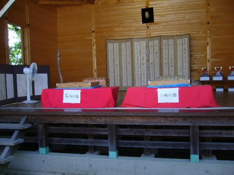蜘蛛の闘いが見られるのは、鹿児島県加治木町と、ここ四万十市の2ヶ所だけである。以前は中村市と言っていたが、合併で四万十市となった。高知からJRの特急で約1時間半。普通列車だと3時間ほどかかる。この町の一條神社で行われる「女郎ぐも相撲」が今回の目的。朝9時からと早いので、前日に入り、駅前のビジネスホテルに宿をとる。駅は町の外れにあるため、中心部までは15分ほど歩かなければならない。朝8時半に宿を出て神社に向かう。大きなビルはあるが寂しい感じだった町は中心に近づくにしたがって頼もしい町並みになっていった。会場となる一條神社は町の中心部。朝9時の競技開始というので、事前準備から見ようと行ってみると、そこには高い石段が待ち受けていた。登ってみると山頂に確かに神社。その境内の一角にテントが建てられ準備の真っ最中。建物の一つの前に椅子が並べられ観客席になっている。石段を上がったところに受付が設けられ、準備完了。