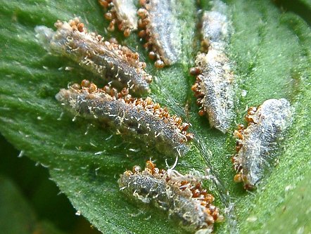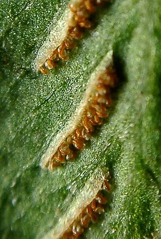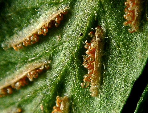 千葉市若葉区谷当地区でのセイタカシケシダ包膜 包膜表面に確かに毛がある。また、包膜の縁は不規則に裂けているのもわかる。