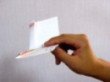 @正方形の紙を使いたいので、プリンターで使うような長方形の紙は、定規で測って正方形になるように線を引きます。(折り紙なら楽) 写真の紙はプリンターで使っているA4の用紙です。 A正方形の紙ができたら、半分に折って三角形にします。 C折った部分を円形にするので指でしごいて丸い形にしていきます。 E円形になった部分を指でしごいて、より円形になるように形を整えます。これで完成。 ※投げ方は、紙コップのピークを投げるのと同じで、前に押し出すように投げます。 |