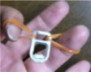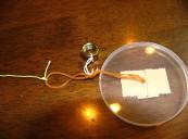 | これは、仮説社の「ものづくりハンドブック」に載っていたものです。ラブラブめがねというものがあって、それをかけてろうそくや白熱灯などを見ると、灯りがハート形に見えるというものです。「ふーん、そんなものがあるのか・・。」位にしか読んでいて感じなかったのですが、甥っ子の結婚式に出席した時にこれが配られたので、「スケルトン」のことを思い出して作ったものです。 「スケルトン」は、昔ちょっと怪しげなおじさんが、学校のそばで「このX線めがねをかけると、骨まで見えるんだよ。」と言って売っていたものです。確か小学校の1・2年生くらい(40数年前)で20円くらいだったような・・。お小遣いが5円か10円の頃ですから、結局買えなくて見るだけだったものです。 |