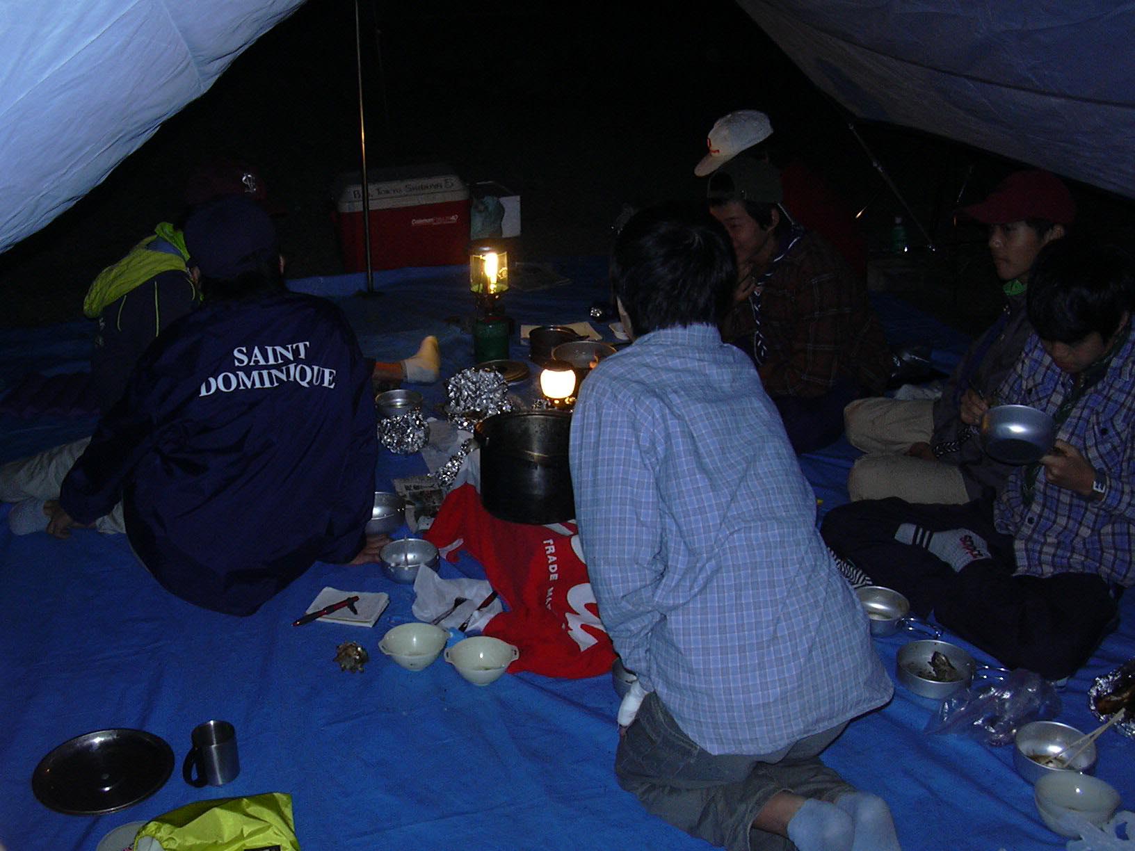 BS隊はドームテントを立てる。