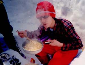 雪中キャンプでの簡単でおいしく食べられるペペロンチーノの作り方