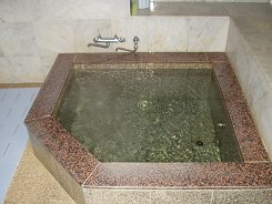 ■熱川温泉「プチホテル サザンウインド」 ネット検索してたら熱川でかけ流しのプチホテルがみつかり、日帰りはできないようなので泊まってみました。山側の三菱地所の別荘地内にあります。外観・館内とも洋風で温泉のイメージはあまりありませんが、部屋数7に対して浴室3、うち2つがかけ流しですから贅沢なものです。当日はほぼ満室のようでしたが、ゆったりと入れました。 浴室は露天、古代檜風呂、大理石風呂がありすべて貸し切り可。大理石風呂のみ加水循環。で、かけ流しの2槽のみ入りました。 古代檜風呂は、樹齢2,000年の檜が生木のまま倒れさらに150〜200年も眠り続けた逸材を使っているそうです。浴室はせまくややこもり気味で1.2人の浴槽がひとつ。投入量固定式カランからさわれないほどの熱湯を数L/min投入で、全量をオーバーフローのかけ流し。お湯はかなり熱め。 お湯は両槽でほぼ同じイメージです。無色透明で弱塩味にごく軽い磯の香+微草臭。ヌルすべと明瞭なとろみがあって、入りごこちのいいお湯です。(とろみはメタけい酸=203.0mg/kgのシワザか?)塩加減といい、とろみといい、群馬吾妻の村営あづま温泉「桔梗館」を思い起こしました。なお、お湯は自家源泉ではなく購入しているとのことですが、それでかけ流しは立派です。 館内はしっかりと手入れされているし、洋風の料理もなかなかに美味しい(とくにデザートは秀逸)ので、和風旅館だけでなく、たまにはこんな宿に泊まってみるのも面白いと思いました。 Na-塩化物・硫酸塩泉 92℃、pH=8.2、総成分=2864mg/kg、Na^+=820.8mg/kg、Cl^-=1025、SO_4^2-=553.4、HCO_3^-=85.9、メタけい酸=203.0、メタほう酸=18.9 <S56.8.18分析>