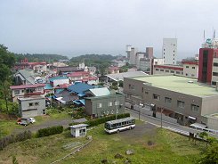 ![]() 客室からの男鹿温泉全景。バス左が源泉井戸 |
