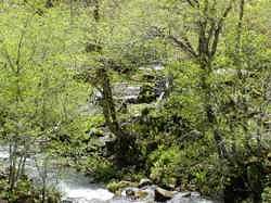 ![]() 熊ノ湯駐車場から川越しに望む露天風呂 木立が目隠しになる |