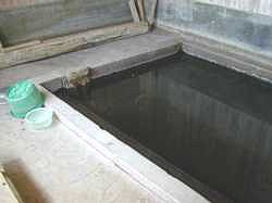 ![]() 川湯公衆浴場の内湯 窓の向こうに熱交換槽が見える |