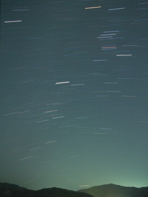 オリオン座〜カノ−プス 1998年3月3日 19時30分〜20分露出 双海町 明神山で撮影 カメラ:PENTAX MV-1 24mmF4 フィルム:コダックE200S 冬の夜空は明るい星がたくさんあります。そんな中、オリオン座〜おおいぬ座そして、カノ−プスと続くこのあたりが最もにぎやかです。