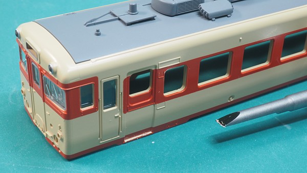 なぜか車端部に向かって斜めに落ちてゆく裾の塗り分けをタッチアップしたりとちまちま。