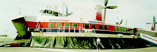 この、ホバークラフトに乗ってドーバー海峡を渡りました。乗り心地は、音が うるさく、水しぶきで