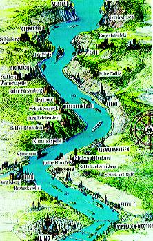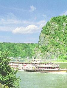右の写真の巨岩がローレライと呼ばれ高さ130Mも