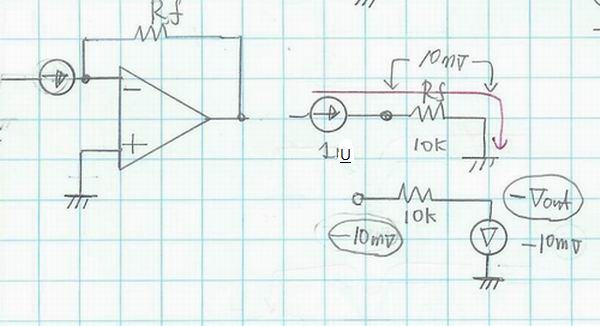 となり Rin、Vinが固定でRfが変化した場合、両者を足した電流値は Vin /Rinになるので