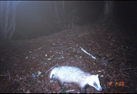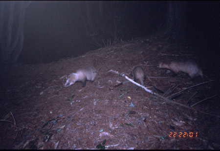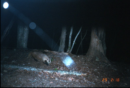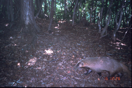 自動撮影装置でこれまでのところもっとも多く写っているのはアナグマである。