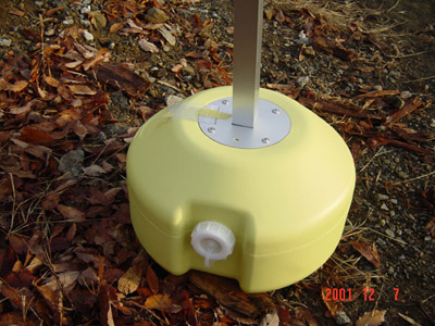 | ステンレス製のボックスには,併せて作製したパンフレットが入れられるようになっています。 | 台座はプラスティック製で軽く,注水して利用する形態のものです。 |