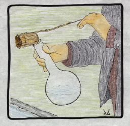 I recently received a letter from a reader asking about something she saw in the illustration for one of last year's columns - a large flask hanging in front of the light bulb at my carving bench. What is it for?
