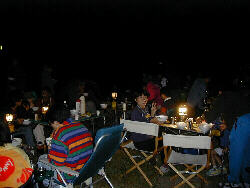対岸には、「オートキャンプ那珂川ステーション」が有るが、上陸した方はただの河原、無料である。 ちょうど橋の所で栃木県と茨城県の県境になっている。(まぁ大した事ではないが) 各自思い思いの場所にカヤックを上げ、しばし休憩、着替えをしたりお風呂に行ったり夕食までは自由時間である。 |