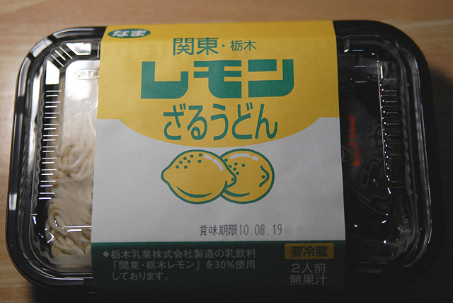 レモン牛乳ダレにつけて食べるざるうどん。ではなくて、うどんに関東・栃木レモンが30%練りこまれています。