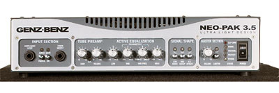 NEO PAK 3.5 は、片腕で持ててしまうほどの軽量ベースアンプ(なんと3.85kg) しかし音はとてもヘビー!真空管プリアンプの迫力のあるトーンです!ダイナミックでクイックなレスポンスのアンプです |