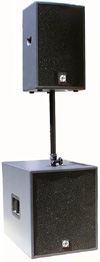 ●出力:サブウーハー300W、外部フルレンジ200W●周波数特性:30〜5kHz(−3dB)●入力端子:XLR●背面キャスター●外寸:W490