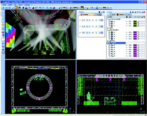 EasyViewは、リアルタイムにステージの照明をシミュレーションします。ScanLibraryを併用すれば、照明の光線だけではなく、カラー・ゴボ・調光・アイリス・ストロボなどの効果も再現可能。そして3Dで再現。自宅で、オフィスで、またはクライアントとの打ち合わせで、いつでもステージを再現できます。 |