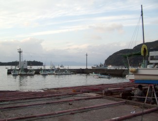 灯台の細部は微妙に違っているが、この辺の他の灯台と比較すると「これ以外にない」と断言できるくらいは似ている。 また、バックにある山の形を見てほしい。全くそっくりである。(笑) なお、この埠頭は漁船の停泊にも使われていて、漁業関係者以外立ち入り禁止であるため釣りはできないようである。 |